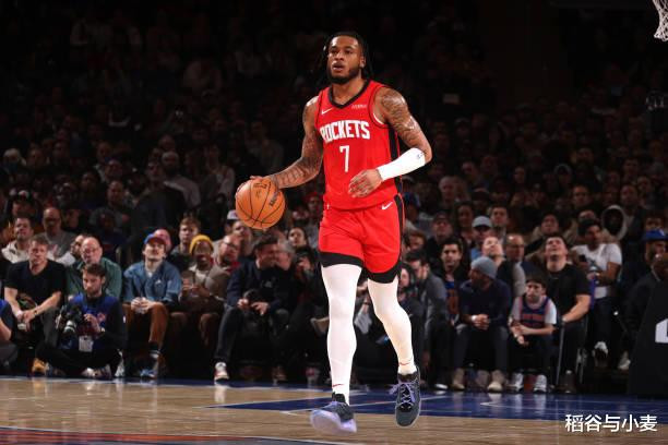 本场比赛中,火箭虽然输掉了比赛,但是球队的替补侧翼新星卡姆-惠特莫尔(Cam Whitmore)的表现其实是相当不错的。惠特莫尔全场出场22分39秒,投篮14中7,三分线外4中2,罚球3中2,得到了18分5篮板1助攻2抢断1盖帽,还有1次失误,正负值也是达到了+9。惠特莫尔在攻防两端都有着相当不错的表现,他的进攻效率相当稳定,他也是抓住了机会得到了不少的分数。惠特莫尔在防守端的表现同样是可圈可点的,他也展现出了相当不错的个人防守能力。只是到了比赛最后一节,惠特莫尔被摁在了板凳席上,火箭依然选择了信任状态一塌糊涂的杰伦-格林(Jalen Green)。不夸张地说,这样离谱的安排也是直接导致了球队的失利。
